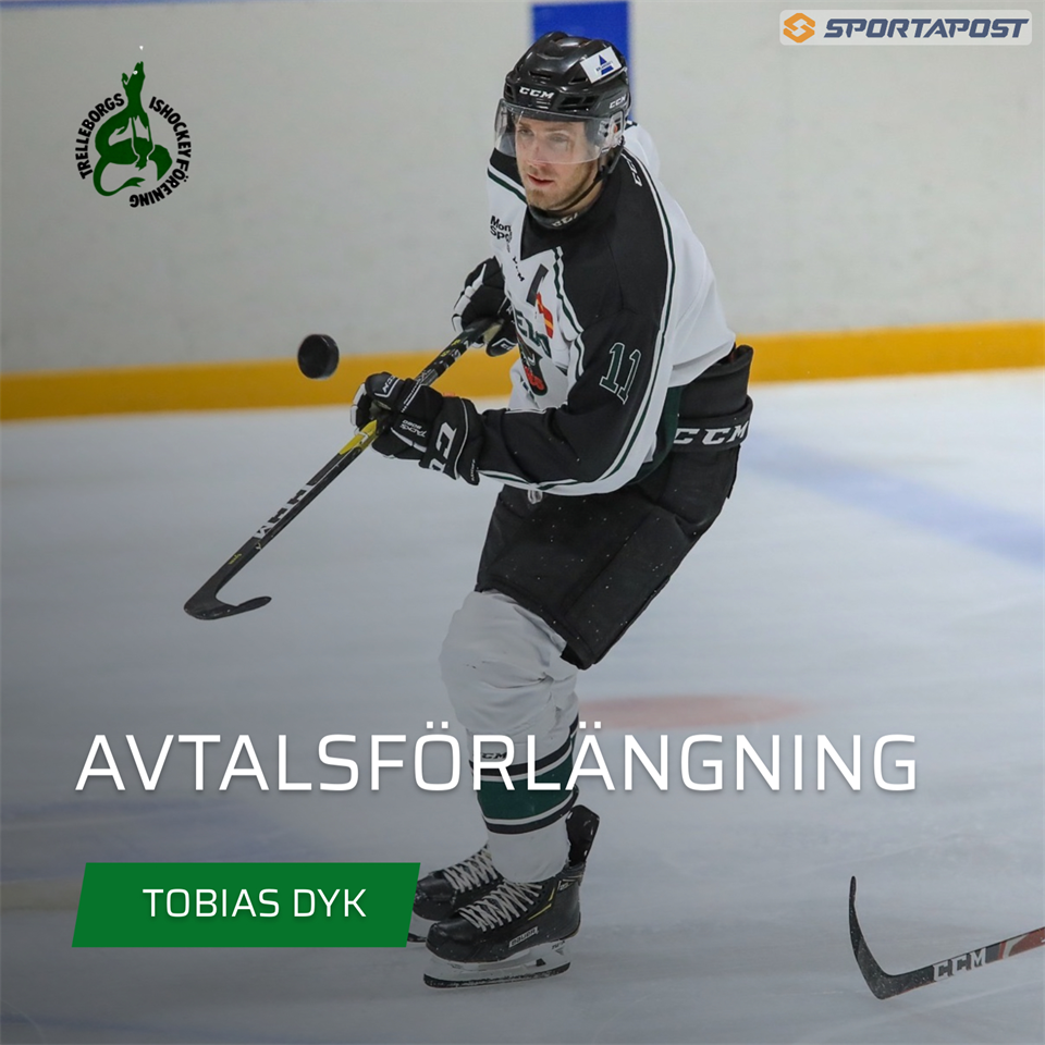 Vi kan med stor glädje presentera att vår poängkung såhär långt, Tobias Dyk, valt att redan nu förlänga sitt avtal med Sveriges finaste Ishockeyförening. Därmed står det klart att Tobias kommer att representera Trelleborgs Ishockeyförening även nästa säsong, 2020-2021.