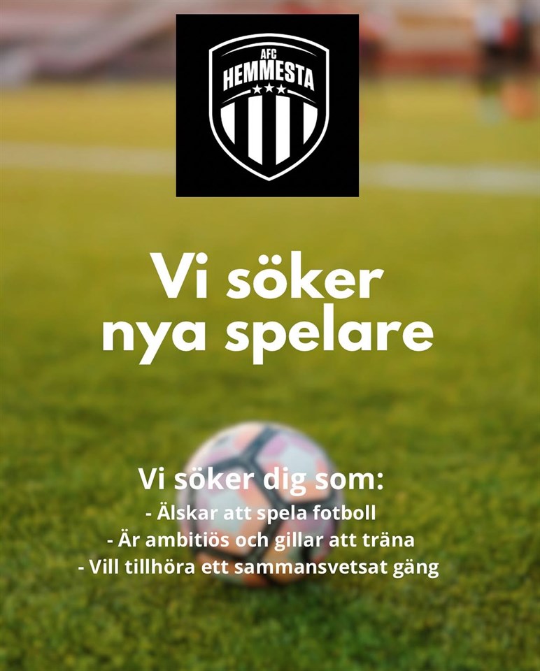 Klicka på bekräftelselänken i det mejl vi skickat dig för att börja ta emot uppdateringar från AFC Hemmesta P12.