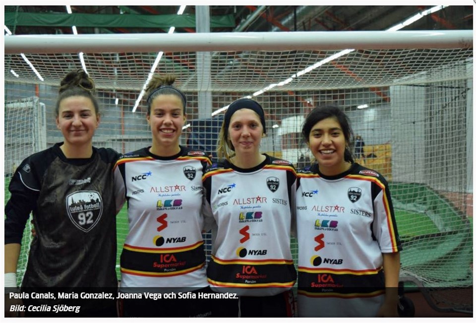 Artikel ur Kuriren 15 mars 2016 FOTBOLL/LULEÅ En träning tillsammans, det var det som spanjorskorna från Barcelona fick tillsammans med Allstar FC inför helgens två träningsmatcher. Fakta Allstar FC–ÖjebyIF 15–0 Veckans match Mål, Allstar: Susanne Pålsson 5, Maria Gonzalez 5, Josefin Blomberg 2, Pernilla Lindgren 2, Sofia Hernandez Pazmiño. Allstar FC–Gammelgårdens IF 1–1 Mål Allstar: Maria Gonzalez. Först var det Gammelgården, sedan var det Öjebyn som ställdes mot Allstar FC. Eftersom inga kontrakt var skrivna med tjejerna från Barcelona före dessa matcher, gällde det att leva upp till förväntningarna. 19-årige Maria Gonzalez visade prov på fin spelförståelse och ett vasst skott i matchen mot Gammelgården. Gonzalez gav också Allstar FC ledningen i den tillställningen med ett fint, högt och hårt skott, men Gammelgården lyckades kvittera några minuter senare. Trots att det var Allstar FC som hade det mesta av bollinnehavet, och som genom Maria Gonzalez och Mercy Monday, skapade mängder med farliga chanser, ville inte bollen ta sig över mållinjen igen. – Vi började hyfsat bra, men vi tappade. Vi tryckte ihop laget för mycket, säger Torbjörn Vikman. – De är ganska tuffa och starka i kroppen, vi hade många sjuka, som även spelade, så vi fick inte ut allt. Sedan är det första gången vi spelar ihop, de är lite svårt eftersom vi bara haft en träning och sedan språket. Paula Canals, Maria Gonzalez, Joanna Vega och Sofia Hernandez pratar alla fyra endast spanska och ingen engelska, men med sig hade de förutom en tränare som stod på sidlinjen bredvid Torbjörn Vikman, även en tolk och deras agent som hjälpte dem med kommunikationen på sidan av planen. Men även om de inte kunde vara med på fotbollsplan och översätta, klarade kvartetten av att kommunicera med sina lagkamrater, eftersom fotboll ändå är ett eget språk i sig själv. Det räcker att ropa och visa var man vill ha bollen, för att få till ett fint rull och det visade Allstar FC, som förde det mesta av spelet. Mittfältaren Sofia Hernandez styrde många gånger upp spelet, samtidigt som hon utmärkte sig själv med sin otroliga bollkontroll. Däremot finns det mer att hämta från spanjorskorna. Spelet skiljer sig nämligen en bit från det de är vana vid: – Här är det mycket mer fysiskt och i Spanien är det mer tekniskt, säger Joanna Vega. Efter söndagens match mot Öjebyn som slutade 15–0 till Allstar blev det också klart att de ansluter till laget. I vinsten gjorde Maria Gonzalez fem mål. Vad kommer ni tillföra? – Vi kommer ge vårt bästa ute på planen, vi kommer hjälpa våra lagkamrater och utveckla ett mycket mer tekniskt spel, säger Vega. Vad tycker ni om Luleå såhär långt? – Det är vacker här, i?dag var vi ute på isen och såg en ren. Folk är också väldigt vänliga här, säger Maria Gonzalez. Cecilia Sjöberg