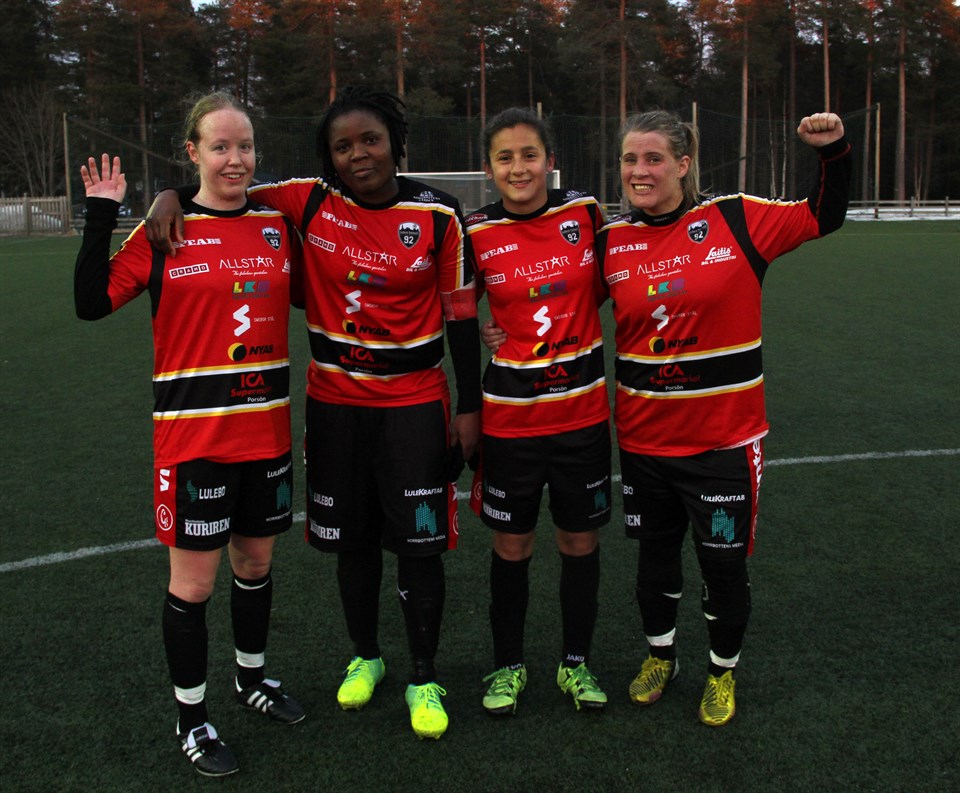 Första matchen avklarad, vinst med 1-6 (0-3) mot Bergnäsets AIK Stundtals fungerade vårt spel ganska bra, vi skapade en hel del målchanser mot ett tappert kämpande BAIK. Målskyttarna i premiärmatchen mot BAIK i Div 2 Norra fr.v. Frida Onsgård, Mercy Monday, Alexandra Taberner och Elin Johansson 0-1 3' Alexandra Taberner ass Yasmina Chamarro Martínez 0-2 5' Alexandra Taberner ass Monday Mercy 0-3 15' Monday Mercy ass Alexandra Taberner 0-4 57' Elin Johansson ua 0-5 68' Frida Onsgård Yasmina Chamarro Martínez 1-6 83' Monday Mercy ass Alexandra Taberner