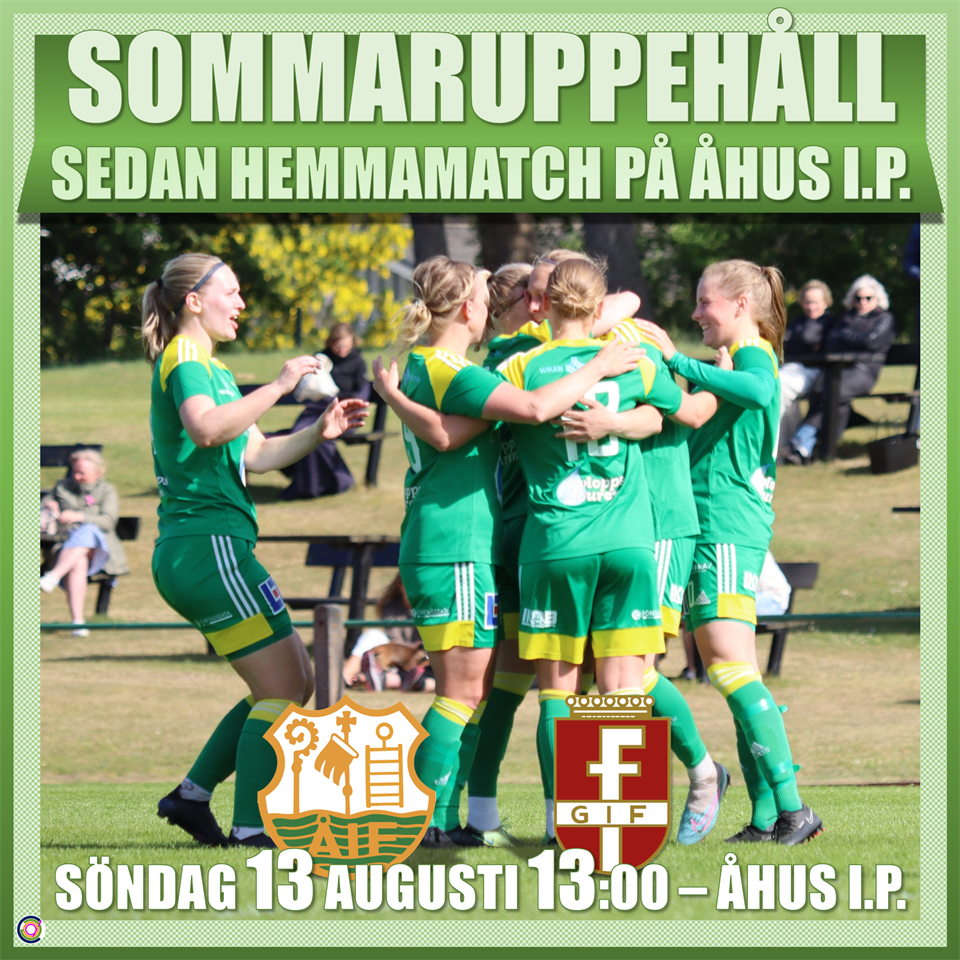 SOMMARUPPEHÅLL - NÄSTA HEMMAMATCH 13e AUGUSTI Åhus IF avslutade våren med att vinna fem av de senaste sex matcherna, och kunde klättra upp till en 8e plats inför sommaruppehållet [laget gjorde dessutom flest mål och hade bäst målskillnad på sista halvan av vårsäsongen]. Åhus inleder hösten med två hemmamatcher mot serietvåan och serie-ettan. MATCHPROGRAM ÅHUS IF-FÄRJESTADENS GOIF Åhus tog emot Färjestadens GOIF hemma i premiärmatchen i division 1, säsongen 2020. MATCHVIDEO FRÅN FÖRRA HEMMAMÖTET MOT FÄRJESTADEN Ha en skön sommar, så ses vi igen den 13e Augusti, kl 13:00 på Åhus I.P. LÖRBY IF-ÅHUS IF ÅHUS IF-FC STAFFANSTORP ÅHUS IF-RAMDALA IF ÅHUS IF-EMMABODA IS SJÖSTADENS DFF-ÅHUS IF ÅHUS IF-LUNDS BK ÅHUS IF-LILA TORGS FF ÄLMHULTS IF-ÅHUS IF FÄRJESTADENS GOIF-ÅHUS IF ÅHUS IF-VÄSTRA KARUPS IF ÅHUS IF-VETLANDA FC