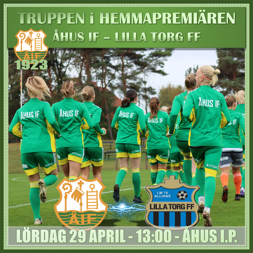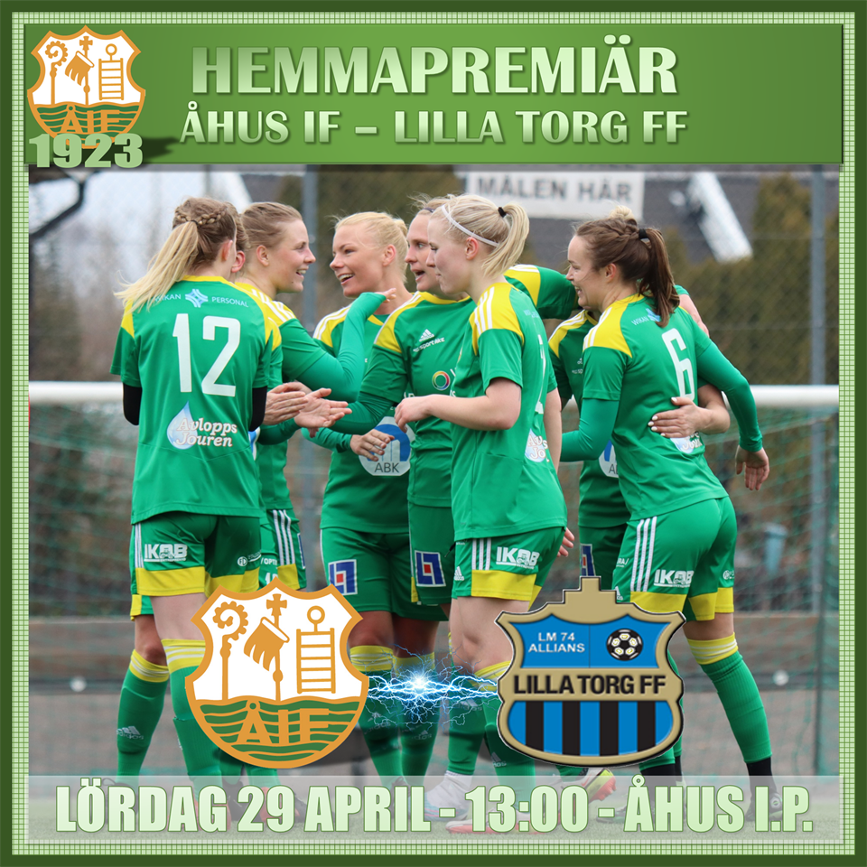 HEMMAPREMIÄR - ÅHUS IF DAM TAR EMOT LILLA TORG FF På lördag är det dags för hemmapremiär för Åhus IF Dam, när seriefyran [efter tre omgångar] Lilla Torg spelar på Åhus I.P. för första gången. Åhus IF har spelat en omgång mindre [omgång 1 spelas den 6e juni]. Åhus IF har inlett mot två förmodade topplag, två lag som spelade division 1 föregånge säsong, med två förluster. Lilla Torg spelade förra säsongen i samma serie som Malmö FF, där man slutade på en fjärde plats. Lilla Torg har den näst äldsta truppen i serien, med en snittålder på dryga 26. Laget har gjort 6 mål, fördelat på fem olika målskyttar. MATCHPROGRAM ÅHUS IF-LILLA TORG FF