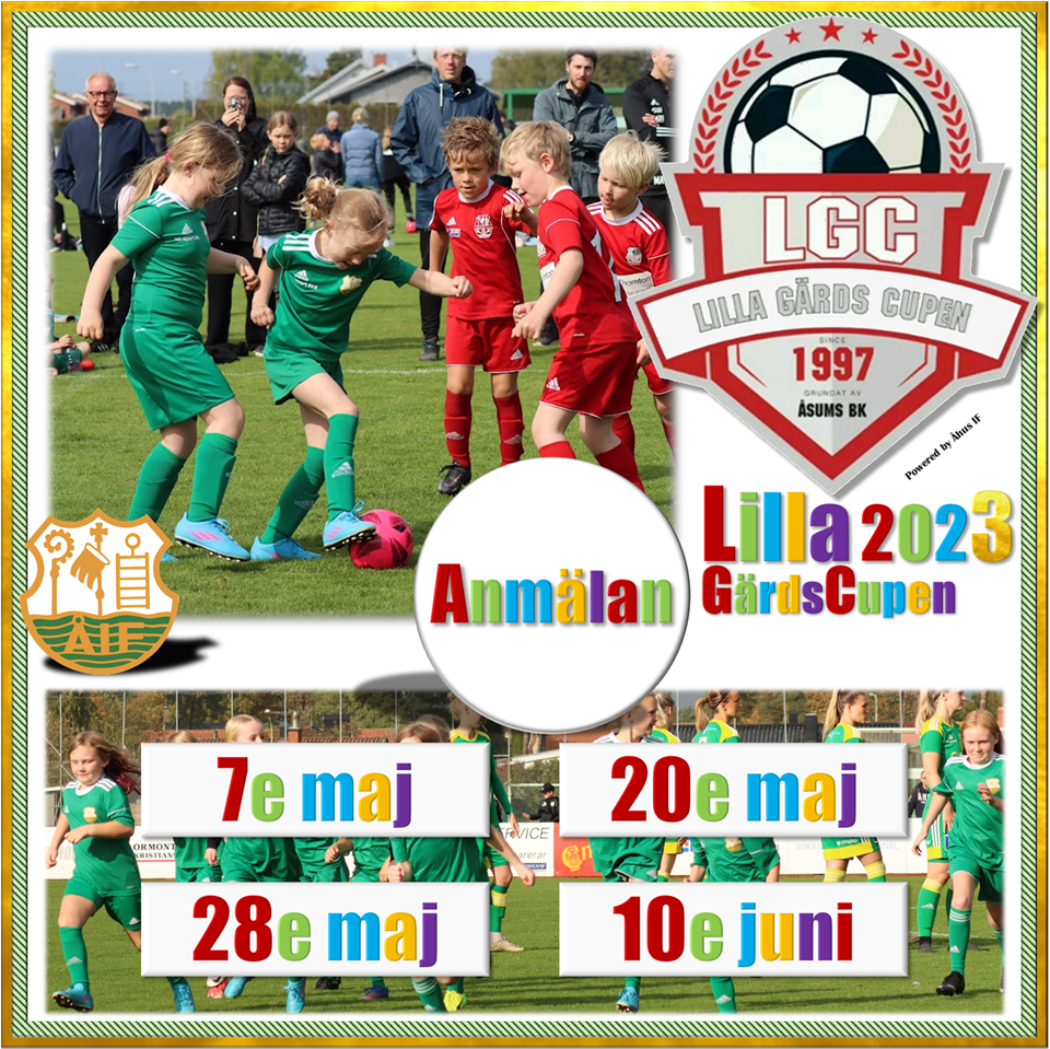 Vi hälsar dig hjärtligt välkommen till årets upplaga av Lilla Gärdscupen 2023 Anmälan är nu öppen! Sista anmälningsdatum 25:e april. Vi har öppet i åldersklasserna FP7 år (f.2016) och FP6 år (f.2017) och emotser med glädje er anmälan. Klasserna spelas mixade flickor och pojkar. Anmälan sker till första omgången men gäller för samtliga tillfällen under 2023. Cupen spelas vid 8 tillfällen under året. Speldagar och platser under våren; 7 maj - Önnevallen, Önnestad 20 maj - Nya Vallbjörka, Nosaby 28 maj - Wendesvallen, Åsum 10 juni - Åhus IP [OBS - NYTT DATUM] Höstens datum publiceras så snart dessa är fastställda. På menyerna (i Procup) återfinns olika alternativ. Bl.a. kan ni från dessa menyer anmäla ert lag. Med hjärtliga hälsningar Lilla Gärdscupen 2023-kommittén LÄNK TILL ANMÄLAN