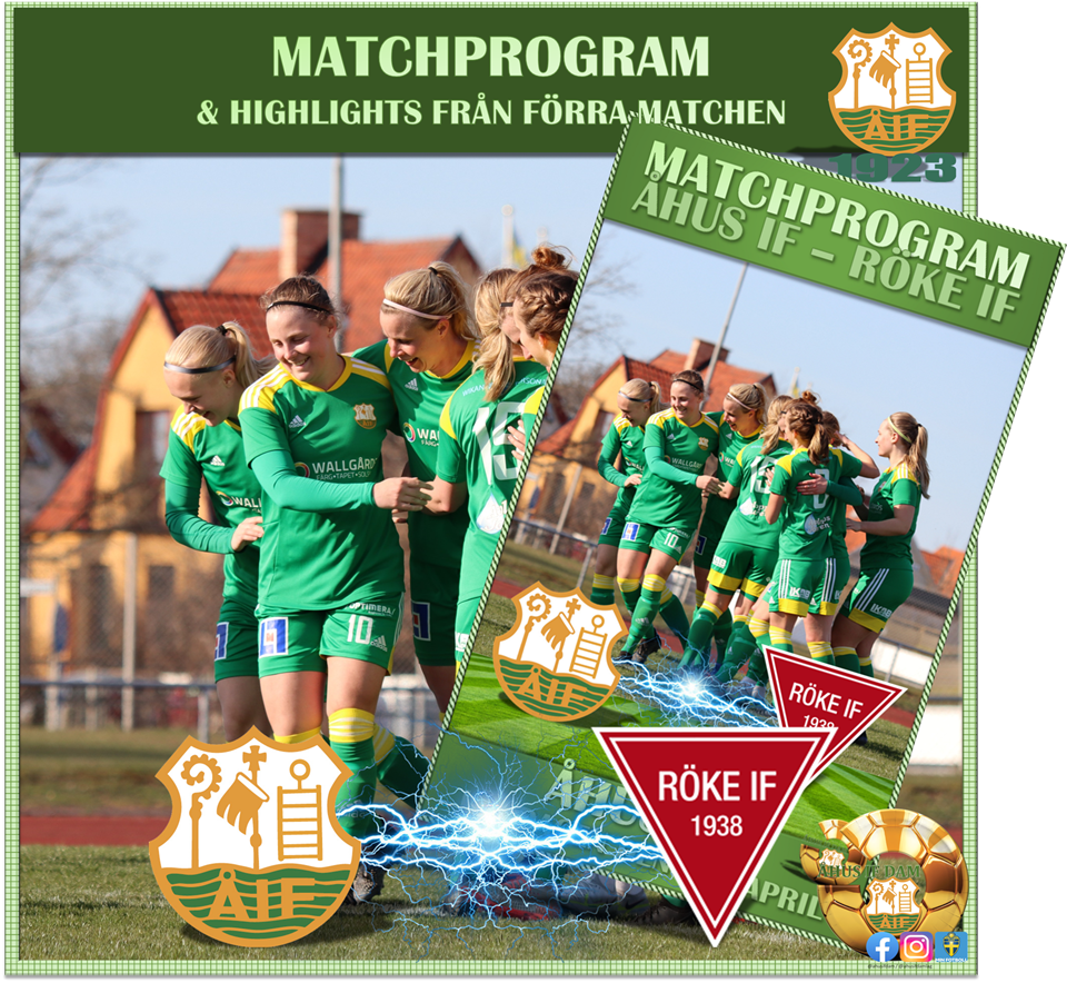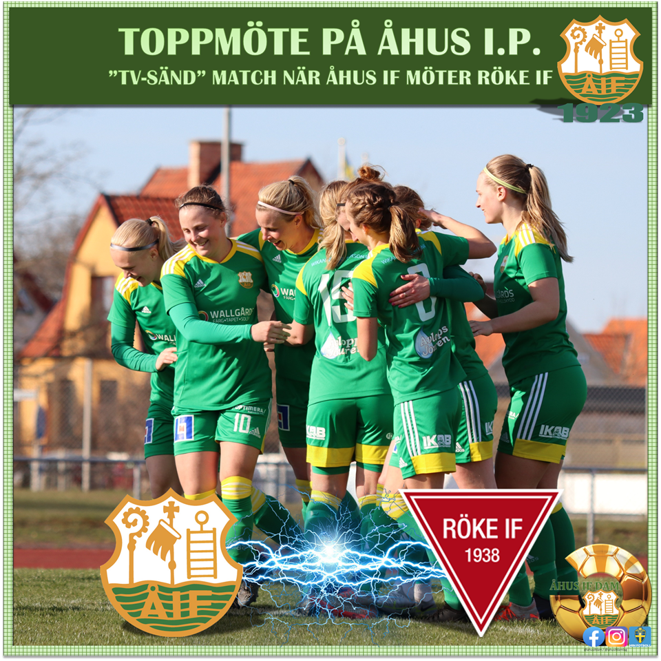 PREMIÄR & TOPPMÖTE PÅ ÅHUS I.P. Åhus IF Dam möter serieledande Röke IF hemma på Åhus I.P. Åhus IF har inlett med två segrar i serien [plus tre vinster i DM - vidare till 1/8-delsfinal], nu senast bortaslog Ängelholms IF med 1-4. Det var bara en imponerande backlinje och stark målvakt som förhindrade en större förlust, då Åhus IF ständigt pressade på. Röke IF slog oxå Ängelholm, i sin premiärmatch. Det blev en mer knapp vinst i helgen mot Glumslöv. Röke IF "blev av" med sin huvudtränare två veckor innan premiären. Nu hade man kvar två tränare, Sara Andreasson, och Jennie Svärd Husu, som delar på tränarsysslan. Efter två omgångar leder Röke IF serien, på bättre målskillnad än Åhus IF. Matchen kommer sändas på Kristianstadsbladet, för de som inte har möjlighet att komma ner till Åhus I.P. för att se matchen live. Matchstart: 1400 Lördagen den 23e april Vi lägger upp Matchprogram Åhus IF-Röke IF Bilder från matchen Ängelholms FF-Åhus IF i helgen