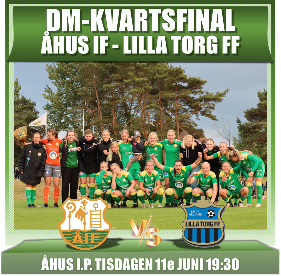 DM-KVARTSFINAL PÅ TISDAG På tisdag är det dags för kvartsfinal för damerna i DM [matchstart 19:30]. Åhus IF tar emot Lilla Torg FF [div 2 västra]. Lagen möttes förra säsongen i serien, och de båda mötena slutade med varsin vinst. Lilla Torg vann med 1-2 på Åhus I.P., Åhus tog revansch och vann i Malmö med 0-2. Lilla Torg slog ut serieledande Vellinge i åttondelen på straffar. Övriga matcher i kvartsfinalen Malmö FF-Eskilsminne IF, tisdag 19:15 Helsingborgs IF-Husie IF, onsdag 19:00 Fortuna FF-Södra Sandby IF, onsdag 19:00