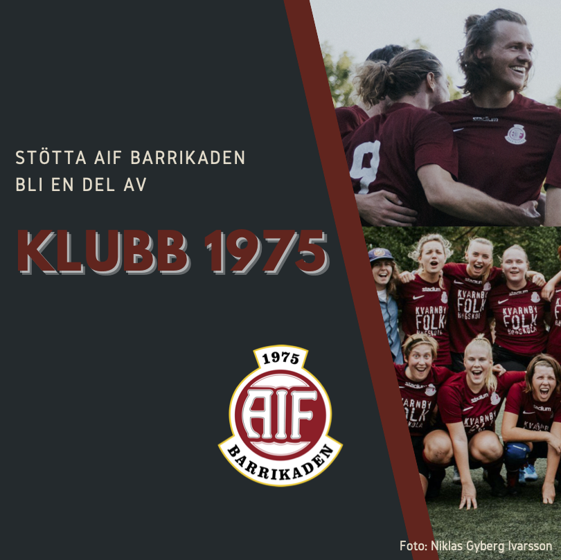 Klubb 1975 är ett nytt sätt att stötta AIF Barrikaden för privatpersoner, familjer, kompisgäng eller mindre företag. Det är ett sponsorskap som gäller i en säsong och möjliggör att vi kan komma iväg på träningsläger, köpa in matchkläder och nytt material. Det hjälper även så att vi kan fortsätta hålla låga medlemsavgifter och göra det tillgängligt för fler att spela fotboll. Klicka på länken så hittar ni mer information i pdf:n med namn Klubb 1975 bland våra dokument. Klubb 1975 Vi önskar er alla en Glad Påsk!