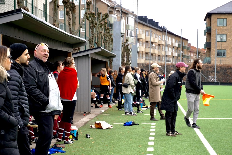 Resultat:0-0 Startelva: Alice – Elsa, Felicia S, Kajsa, Josefin Ott, Andrea, Yrsa, Amanda E, Hedil – Fanny, Maja S Avbytare var: Ellinor som kom in som vänster yttermittfältare efter knappa halvtimmen och spelade sedan under matchen yttermittfältare såväl till vänster som höger. Eva som kom in som anfallare efter knappa halvtimmen och sedan förutom en kvarts vila i andra halvlek spelade som sådan resten av matchen. Anna som kom in som vänsterback efter en halvtimme och spelade sedan under matchen ytterback såväl till vänster som höger. Maja H som kom in som innermittfältare efter en halvtimme och sedan spelade i den positionen tills hon blev utbytt mot slutet. Saga som kom in som högerback efter paus och därefter spelade mest i den positionen men jag tror att hon också spelade vänsterback ett tag. Vi var ytterst nära att få en riktig smakstart efter bara 50 sekunder när Maja S och Hedil kom ända fram till deras målvakt utan att riktigt få in bollen. Eftersom jag fortfarande stod och skrev upp startelvan missade jag vad det var mer exakt som hände, bara att det var ytterst nära att bollen hamnade i målet. Vi höll sedan matchen helt jämn ett tag men fr.o.m. 8:e min när de hade ett skott över från ett jättebra ostört läge tog de över rejält. Resten av halvleken såg det ungefär likadant ut hela tiden. De förde spelet och skapade med jämna mellanrum jättechanser men där en kombination av dålig skärpa i avslutningarna och ett strålande målvaktsspel av Alice gjorde att vi kunde hålla nollan intakt. Vårt defensiva spel fungerade som helhet väldigt dåligt och det fanns ständigt stora hål i vårt lag där de kunde starta sina anfall. De få gånger vi kunde gå till offensiv hade vi däremot en del fina kombinationer i förstaskedet som dock aldrig ledde till några farligheter att tala om, möjligen kan en boll från högerkanten (en hörna?) som parallellt med kortlinjen svepte förbi ett antal av våra spelare bara några meter från målet utan att någon lyckades få en tå bollen karakteriseras som en sådan. Sedan hjärntrusten haft sitt snack med spelarna i pausen kom ena halvan av denna duo ut och deklarerade att nu skulle det komma att se mycket bättre ut. Och han fick helt rätt. Första 15-20 av andra halvlek dominerade vi kraftigt, hade tätat till vår defensiv och spelade med ett synbart självförtroende som inte riktigt fanns där i första halvlek. Chansmässigt gav det dock mest lite halvchanser fast med ett kraftigt undantag. Det kom i den 49:e min när Ellinor från långt håll och ganska nära kortlinjen fick på ett skott som såg ut att segla in perfekt över målvakten och ner i hennes högra hörn men där bolluslingen inte sjönk riktigt tillräckligt utan tog klockrent i ribban. Efterhand tog sig Las Presidentas (formellt Malmö City) tillbaka in i matchen och tog väl också över den under en period. Framför allt skapade de nu åter flera fina målchanser men där de antingen sköt utanför eller i famnen på Alice. Dock kändes vår defensiv ändå klart bättre än i första halvlek och vi var inte helt ofarliga framåt heller även om de riktigt klara chanserna saknades. När klockan började ticka upp mot 90 böljade spelet fram och tillbaka och det kändes svårt att bestämma sig för om man skulle hoppas att domaren skulle blåsa av eller tvärtom hoppas att hon inte skulle ha så bråttom med det så att vi skulle kunna få in ett segermål. I den 88:e min såg det ut som att matchen skulle avgöras på ett lika otroligt förargligt som onödigt sätt i Las P:s riktning. Efter ett väldigt slarvigt bolltapp kanske 10-15 meter in på vår planhalva kunde deras spelare avancera helt ostörd mot Alice men min penna kunde med en stor suck av lättnad åter förpassas ner i jackfickan när Alice med ännu en framgångsrik aktion räddade oss. Efter ett tillägg på 2 minuter för att kompensera för att en 23:e liten luddig deltagare tagit sig in på planen tidigare kunde vi konstatera att matchen slutade mållös något som vi bör vara mest nöjda med sett till hela matchen. Statistik: Hörnor: 3-7 Avslut på mål: 8-10 Avslut utanför: 3-5 Jättekul var det att precis som i tisdags se en så stor publik på plats, i tisdags var det väl cirka 50 åskådare varav minst 90 % verkade vara våra fans. Idag var det 60-70 varav förstås många var Las P-anhängare men där det kändes som att vi nog ändå var i en liten majoritet även om det var svårt att avgöra. /Bengt