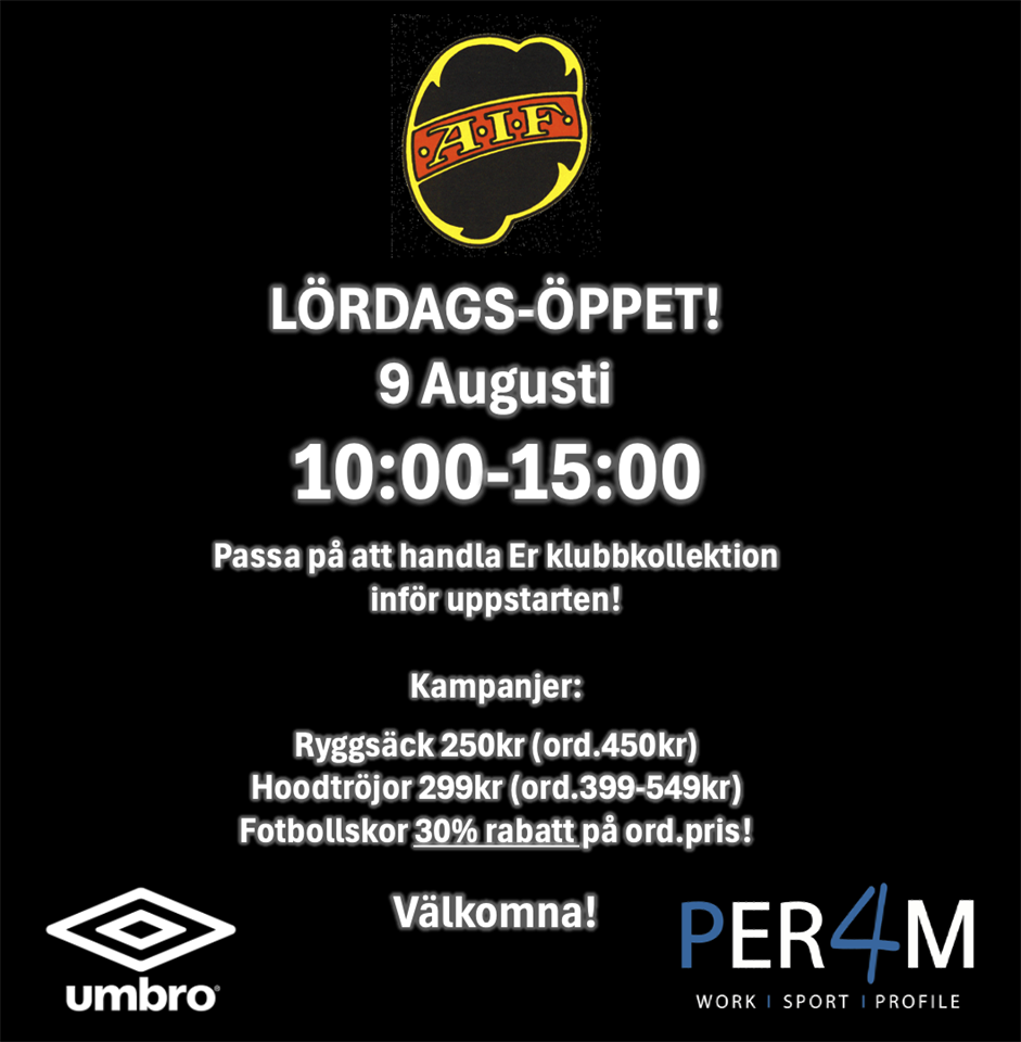 Lördagsöppet på Per4m! På lördag 9 augusti så håller Per4m öppet kl 10-15! Passa på att fylla på med klubbkollektionen inför uppstarten. Hur många centimeter har vi växt i sommar?:) Kampanj på ryggsäcken (250kr) och hoodtröjan (299kr) i klubbprofilen! 30% rabatt på alla fotbollsskor. Kan fortfarande lägga beställning via mail: info@per4m.se Beställningssedel finns uppladdat på hemsidan. Vi finns på Teknikvägen 4 i Löddeköpinge! (mellan Sparbanken Skåne & JE68) Välkomna! Damer 5 aug 0kommentarer