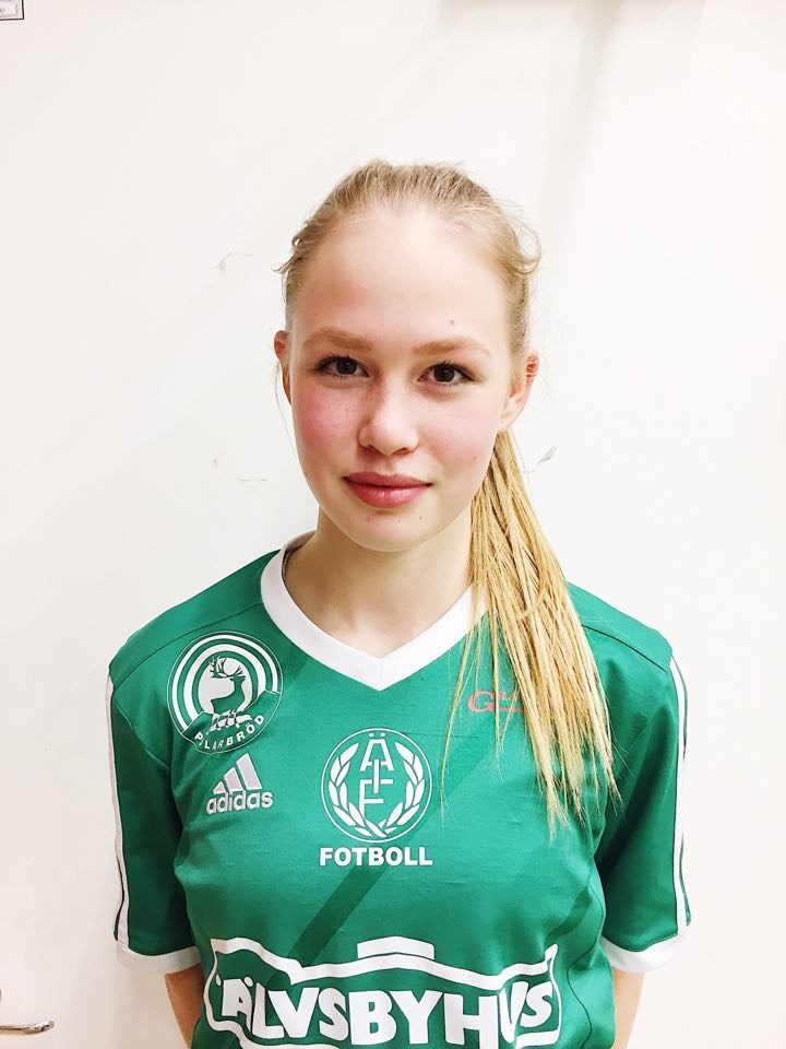 Hej! Jag heter Alvina Lundberg och är 17 år. Har spelat fotboll så länge jag kan minnas och alla åren i Älvsby IF (förutom på kvartersfotbollen när jag var liten). På planen är jag ytterback, men har även hänt att jag fått spela yttermittfältare ibland. Trivs på båda ställena men föredrar ytterback. Min förväntningar på säsongen 2018 är självklart att vi ska vinna många matcher och utvecklas, men även att ha jävligt kul tillsammans!!