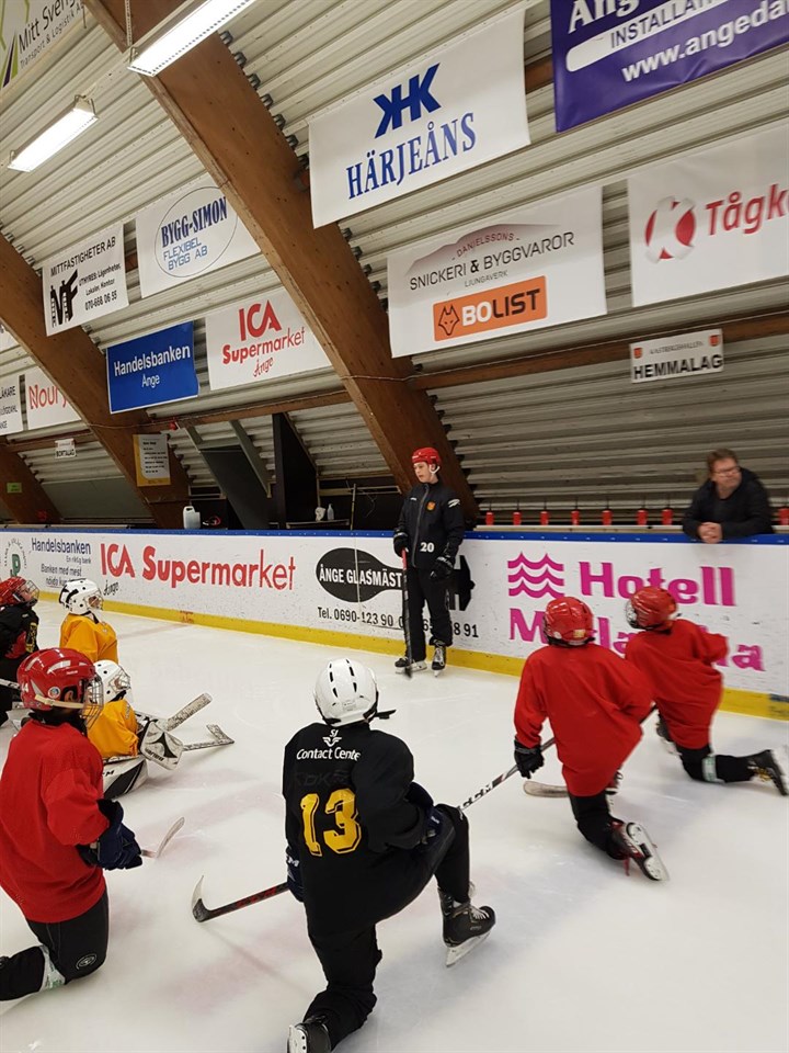 Som en del i vår hockeyutbildning ingår även stora delar ledarskap, något som utvecklar våra spelare såväl på som utanför isen. Vi vill att den röda tråden i vår verksamhet ska byggas kring gemenskap vilket underlättar enormt när man har möjlighet att spela med olika lag varje vecka. Våra juniorer finns alltid på plats när A-laget spelar, ex som båspersonal. Vi har seniorspelare som assisterande tränare och våra spelare i U16 och J18 agerar domare vid cuper och ungdomsmatcher. I fredags ledde J18-lagets kapten Arvid Törnkvist träningen för ett gäng förväntansfulla spelare i U12 och fick massor av beröm för sitt gästspel. Små saker som engagemang och ödmjukhet gör att vi kommer närmare varandra och växer som klubb! Bra jobbat Arvid och tack för inbjudan Ricard!