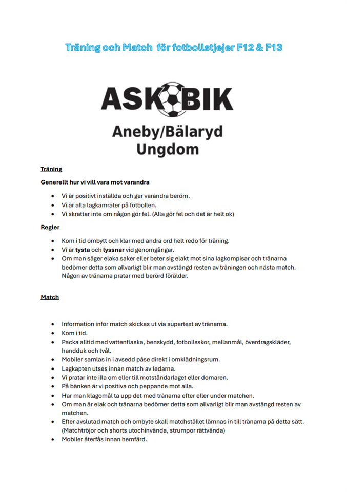 Klicka på bekräftelselänken i det mejl vi skickat dig för att börja ta emot uppdateringar från Aneby SK Fotboll F 12.