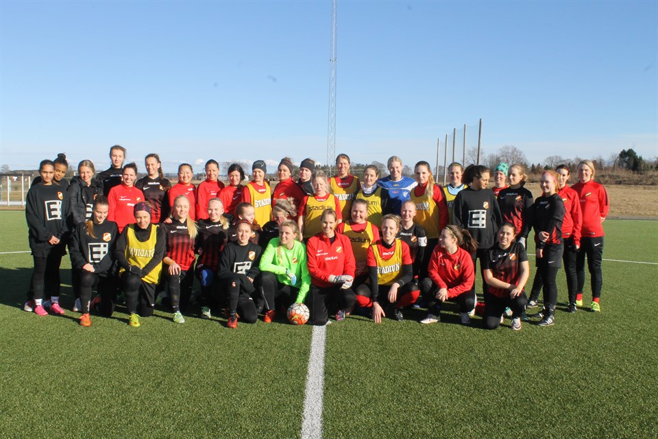 Dags för andra träningsmatchen för i år för vårt A-lag. För dagen stod GFF för motståndet. Dom spelar 2017 med ett lag i div 2 och ett i div 4. Vi skulle möta div 4-laget men på grund av att div 2-lagets match på söndagen hade ställts in så hade dom varit "snälla" nog att ta med 6-8 st div 2 spelare till matchen mot oss. Man kan ju inte påverka vilka man möter men däremot hur man agerar själv. Och det gjorde vi med bravur. Vi hade inför matchen pratat mycket om spelavstånd på mittffält och anfall och det lyckades vi med till 100%. Fantatiskt kul med så frejdigt anfallsspel och vi kom till många fler avslut jämfört med vår förra match mot Älvsborg. Jag räknade till 4st ribbträffar, en missad straff samt ett antal "om foten varit 3cm längre chanser" under machen. Resultatet blev 1-6 men det skiter vi i tycker jag. Nickmål räknas ju extra och Marias nick satt som en smäck (kostym på tränarna nästa match ?). Att se att vårt lag verkligen går för det under 90 minuter och att vi sätter enorm press under de sista fem minutrarna, trots ställningen i matchen, tyder på oerhörd kampmoral. Vi har fortfarande mycket att jobba på med detta var oavsett resultatet definitivt ett stort steg i rätt riktning. Vi ser med stor tillförsikt fram emot fortsätningen av 2017.