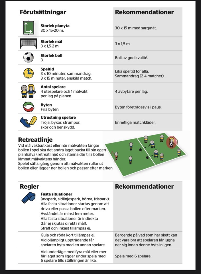 Under sammandraget den 24 maj, kommer vi behöva domare till matcherna. Det kommer spelas matcher enligt nedan: 2 matcher per starttid; 10.00, 11.00, 12.30 och 13.30. Återkommer med spelschemat. Reglerna är få och kan läsas om i nästa bifogade bild. Känner du dig manad att döma en match eller känner du någon som kan ställa upp och döma, skriv i kommentarsfältet nedan. Om vi inte får ihop tillräckligt antal frivilliga domare, kommer lagföräldrarna tilldela någon det som ett arbetspass. 😊