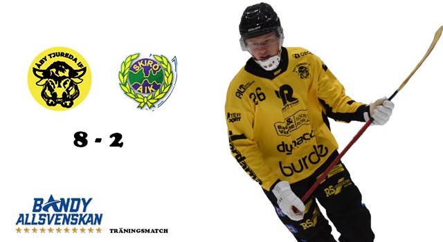 DEL 1 HÄR Andra halvlek: I paus pratar vi om att ha tålamod, vi gör det stundtals bra men i slutet av första halvlek känns det som vi är lite nervösa och ivriga för att vi inte får in bollen, skärpan saknas lite i passningsspelet och bollen sitter inte riktigt på klubban varken vid pass eller mottagningar. Samtidigt gör Skirö det väldigt bra men vi måste bara var lite mer distinkta så kommer det komma. Målvaktsbyte sker också, Anton Svensson in istället för Knutsson. Hörnor åt bägge håll inledningsvis Bägge lagen skapr en del hörnor i början av andra halvlek, Fransson till Lindqvist, avslut som räddas ut till hörna, skott i muren. Lindahl med bra fart kommer sedan långt in på Skirös planhalva och tas bryskt, Frislag i bra läge, räddning av målvakten. Hörna för Skirö som skjuts utanför. och sedan en hörna igen för oss som vi inte får träff på. Jonte utvisad Matchminut 54 nu. Skirö i anfall och vi är inte riktigt med i stryningen på mittplan och mankna komma i oss och Jonte blir tvungen att ta till ojusta medel och åker ut 10 minuter för hakning. Efterföljande frislag för Anton en fin räddning på. Philip Lindqvist testar sedan skott från distans som sitter stenhårt i ribban och kort därefter skapar Skirö en ny hörna som även den skjuts utanför. 2 mål på två minuter Timmen spelad och JOnte spelar till Algot som från höger kan klvia rakt mot mål, köra klubba skridsko på siste försvararen och trycka bollen i mål, 3-1. snyggt. Och bara två minuter senare kommer VJ runt på högerkanten, kan kliva innanför backen och rulla in bollen mellan benen på målvakten från nära håpll, 4-1 vilket får Skirö att ta timeout. Ett par minuter senare pch Jonte åter i spel efter sin utvisning och vi är fullt manskap på isen igen. Lukas Mattsson står för en fin aktion och har ett fint avslut men det ärddas tyill en ny hörna. Skirö r täta och nytt skott i muren. Matchminut 71 nu, Utvisning till Skirö någon meter utanför straffområdet, Lindahl till Filip Johansson som kommer i fart och kan sätta upp bollen i nättaket, 5-1. Nära igen för Lukas Lucke har sedan en ny bra chans efter fint förabete av Philip Lindqvist men målvakten räddar igen. Istället kommer 6-1 minuter därpå när VJ sätter ne kort flipp som Algot tar emot och fri kan få bollen i mål. 6-1. Vi har sedan ett nytt bra anfall men instället för avslut passar vi en gång för mycket och då blir dett offside. Skirö börjar bli lite trötta nu samtidgt som vi maler på, det leder till att gästerna tvingas ta en del utvisningar, Bentackling 10 minuter i matchminut 77 och frislag i bra läge för oss. Lindahl till flip Johansson, avslut räddning, Lindahl först på returen och kan peta bollen i mål, 7-1. Bra brytning av Gustav Wallin Skirö försöker sig sedan på ett lyfgt när vi står högt men Gustav Wallin är med och bryter snyggt, Vi avslutar sedanöver efter ett nytt bra anfall, Skirö sätter igång snabbt men även deras avslut en bit över mål. Philip lLndqvist får sedanäntligen göra mål då han blir snyggt frispelad av Jonte på ett precist lyft, och denna gången sitter Linkans avslut upp i nättaket. 8-2. Nytt friläge minuten senare för Lindqvist men återigen en grym enhandsräddning av Löfqvist. Tre ordinarie minuter kvar nu, ny utvisning Skirö. Fransson med skott på frislaget och ny räddning Löfqvist. Istället kan Skirö slå ett fint lyft som före detta åbyspelaren Jakob Jonsson snyggt plcoakr ner och fri med Anton i mål sätter han dit den mellan benen. reducerat 8-2. Matchen sista chans går även den till Skirö, bra anfall där vi täcker avslutet till hörna, hörnan misas helt och kort därefter blser domaren av matchen. Vinst med 8-2. Summering: En annorlunda match jämfört med första träningsmatchen förra helgen mot Lidköpings AIK. Vi sätter inte riktigt försvarsspelt lika bra idag. Stundtals blir vi lite långa och första styrningen är lite för dålig och Skirö kan komma i oss ganska enkelt. Offensivt spelar vi större delen av matchen bra, vi blir lite änglsiga i slutet av första när vi inte får dit bollen, men vi maler på och till slut lossnar det lite. Sen var det en sådan dag där vi missar en del, mend lite mer skärpa i avsluten så kunde vi gjort ett par mål till. Samtidigt gör Skirö det bra, de står emot bra och Oskar Löfqvist i deras mål gör en fantommatch. De har några luriga spelare som kör mycket och som hittade lite vägar fram när vi inte fick till försvarspelet riktigt som vi ville. I andra halvlek orkar de dock inte såt emot längre när vi maler på vilket till slut ger oss utdelning. Mycket fokus i snacket efter matchen handlade annars om vårt försvarspel och detaljer där som vi vill justera lite, hur vi ska agera i lite olika situationer, våra positoner på isen och hur vi hjälpe varandra bättre i försvarsjobbet. Nu tränar vi i veckan för att på fredag åka till Ale Arena i Göteborg för match mot IFK Kungälv i Supercupen. Nya tag då! ***************** Mål Åby/Tjureda: Algot Thuresson 2 st, Viktor Johansson 2 st, Philip Lindqvist, Victor Lindahl, Filip Fransson, Filip Johansson Framspelningar Åby/Tjureda: Jonathan Svensson 2 st, Måns Racov, Victor Lindahl, Viktor Johansson, Philip Lindqvist. ***************** Matchrapport finner du HÄR: Matchrapport Matchlogg finner du HÄR: Matchrapport