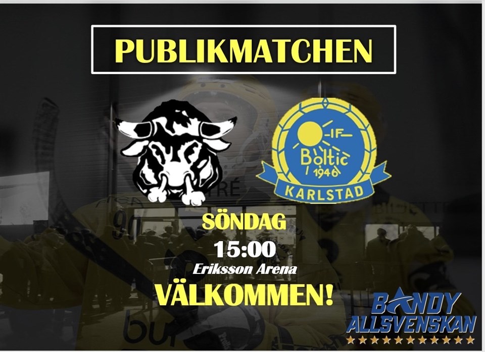 På söndag den 16/1 är det fri entré när Åby tar emot klassiska Boltic. Sponsorer bjuder dig på inträdet, och vi hoppas på bandyfest! (Restriktionerna låter som bekant meddela att vi får ta in Max 500 personer i hallen). Vill du vara med och sponsra till inträdet? Det gör du genom att betala 1 kr/åskådare (Max 500) Du skickar då ett Mail till Carolina Sköld på carroihjule@hotmail.com Välkomna!