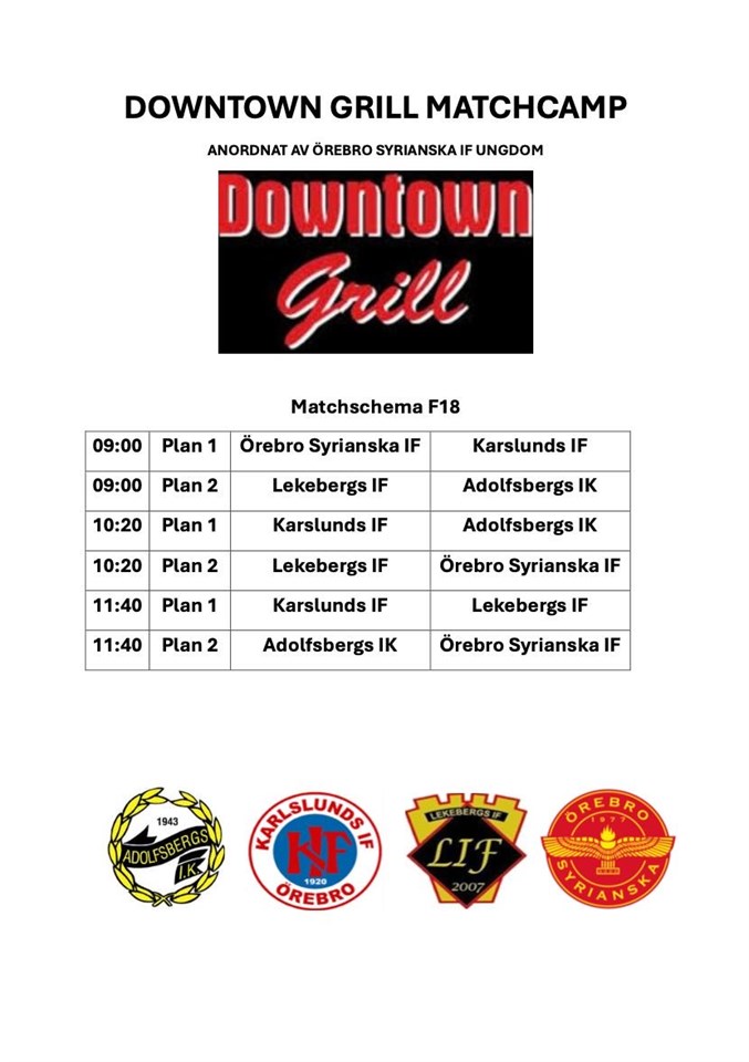 | Adolfsbergs IK F18 (hemma) | 8 nov, 09:00 |