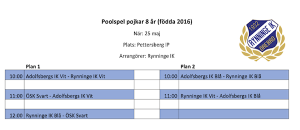 Nedan kommer lagindelning och spelschema inför lördagens poolspel på Pettersbergs IP (gräsplanerna).