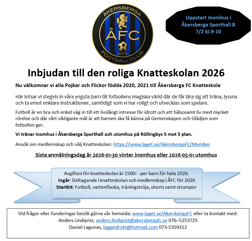 Fyll i din e-postadress för gratis uppdateringar om Åkersberga FC Knatteskolan F-2020/21