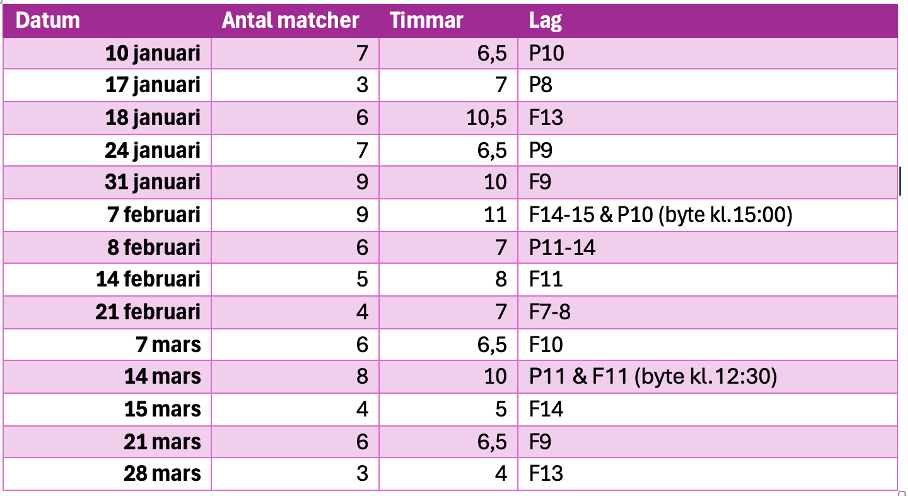 | 26 nov | Hemmamatcher 29 november |