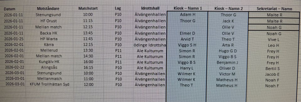 | Kungälvs HK Vit (hemma) | 22 mar, 11:15 |