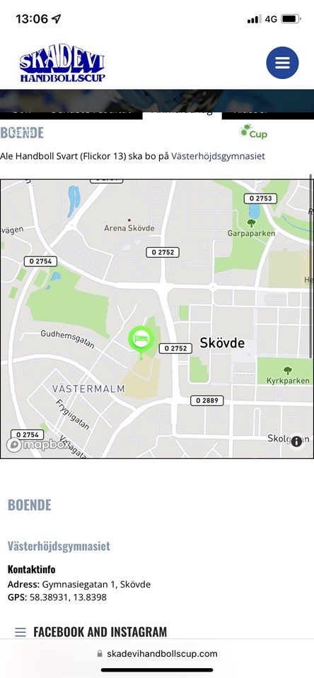 Hej igen, Vi kommer bo på Västerhöjdsgymnasiet, Gymnasiegatan 1 i Skövde, se bild. Inte långt ifrån Skövde arena. Mvh, ledarna