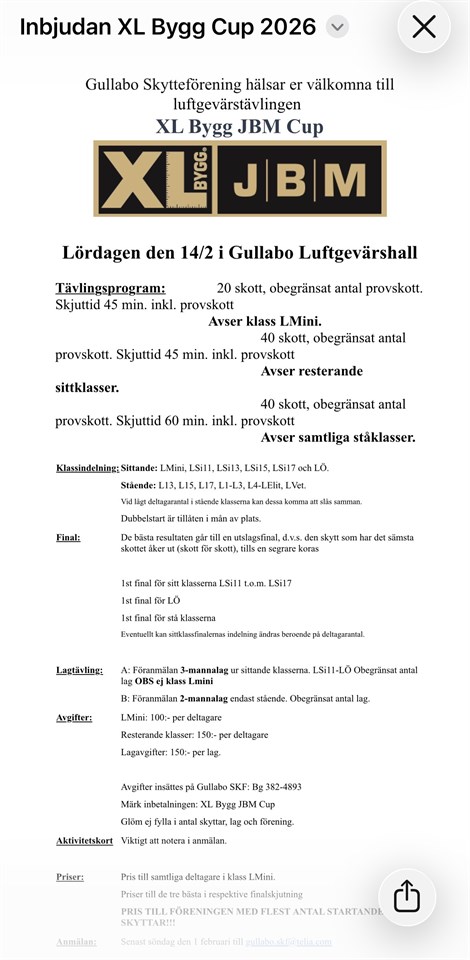 | SSM samt DM /LM Halland Gevär 10m | 24 jan |
