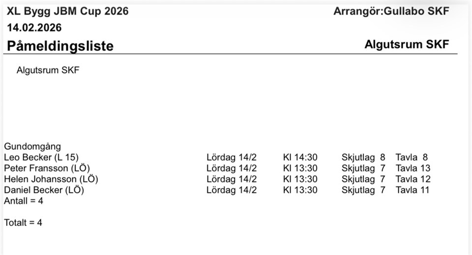 | XL Bygg JBM cup i Gullabo 14/2 | 14 feb |