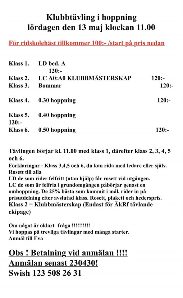 Tryck in för att se proposition Älleköpinge Ryttarförening 23 apr 2023 0kommentarer