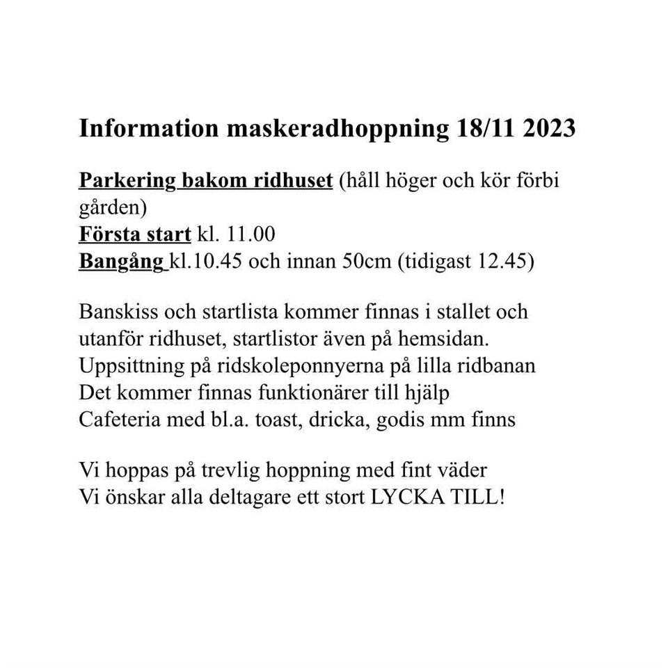 Information till maskeradhoppning 18/11 Älleköpinge Ryttarförening 12 nov 2023 0kommentarer