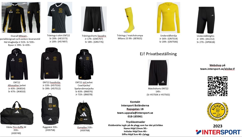 De som har beställt overaller (eller delar av det) kan komma att hämta ut de på Mogatan 54! Se priserna i bifogad bild. OBS!Tryck för initialerna tillkommer: 40kr per plagg (80 kr per set). Betalningen sker till lagets Plusgiro 197 75 44-4. Märk med overall + spelarens namn F-2011 20 jun 2023 1kommentar