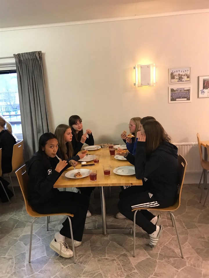 Sen serverades pizza och därefter tittade tjejerna på damlaget som spelade hemmamatch.