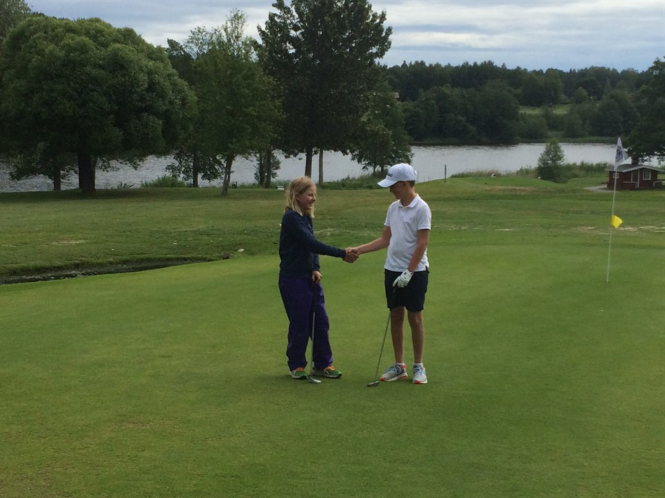 Bra spel av deltagarna under 2018 års Teen Cup! Inte så konstigt med tanke på att tävlingen försigåtts av träningsläger i veckan. På bilden ses Elsa och Filip gratulera varandra till klubbseger för flickor respektive pojkar upp till 13 år. För de något äldre deltagarna, som går vidare till Gruppkval på Grönlunds GK den 13/7, så drog Hannes Åkermark det längsta strået för pojkar 13 år. Han får sällskap av Ellen Asplund Lugnfors som kommer att representera Älvkarleby GK i klassen flickor 15 år. Vi håller tummarna för fortsatt bra spel och att äventyret i Teen Cup blir ett fint minne. Älvkarleby GK 22 jun 2018 0kommentarer