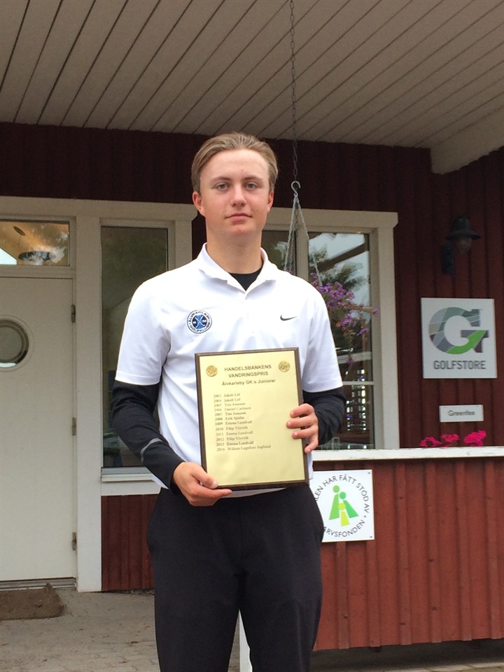 Vilken final killarna bjöd på i finalen av Handelsbankens vandringspris! Inför finalen låg Max bäst till och även Hannes hade allt i egna händer. William och Pontus hade båda chansen, men då krävdes att Hannes, men framför allt Max inte spelade sin bästa golf. Efter nio hål så hade just detta inträffat. Pontus låg två under par och William var slaget efter. Hannes vände på nettopar medan Max var tre över efter en tung start. I det läget var Pontus totalledare av Handelsbankens vandringspris. Efter fjorton spelade hål var ställningen oförändrad, och Pontus såg allt mera ut som en oväntad slutsegrare. Då tajmade Pontus allt fel på 15:e tee och plötsligt var allt vidöppet igen. Hannes greppade taktpinnen och efter två starka parräddningar stod han på 16:e tee som totalledare. Tyvärr Hannes tur att släppa iväg en drive i högruffen och han tvingades slå tredje slaget från tee. Max inser att slaget inte är förlorat och sätter upp inspelet tajt på 16:e vilket resulterar i dagens första birdie. Pontus gjorde också en snabb come-back på 16:e med dagens femte birdie! På 17:e tee var läget följande: William och Pontus delar ledningen på nettopar; Hannes och Max är ett slag efter. Pontus bränner sina vinstchanser efter att ha gamblat från skogen till vänster som slutar i drickat och noterar en dubbel i scorekortet. Hannes förbättrar sina chanser efter nettobirdie. Inför 18:e delar alltså William och Hannes ledningen med Max ett slag efter. William avslutar med en bogey och vägen ser ut att ligga öppen för Hannes. En välträffad, men sned drive senare är hoppet (out) för honom. Max avslutar med ett säkert par och tvingar fram ett särspel med William. Särspelet är synnerligen välspelat. Två drivar mitt i fairway på ettan följs upp med två bra inspel och birdiemöjligheter från tolv fot. Ingen lyckas dock konvertera och spelat går vidare till tvåan. William får på en riktig pärla, men som tyvärr lägger sig tätt intill ett träd. Max placerar ut sin drive i fairway, men har lämnat sig ett långt inspel. Men med en bra spoon hittar han greenen på andra slaget. William tvingas att knacka fram sig och har 120 meter kvar till flaggan. Inspelet stannar sju meter från hål. Max puttar sin 60-fotare död och knackar i för birdie. William läser sin 23-fotare noggrant och sätter bra rull i bollen. Men bollen missar hål och Max står som segrare. Slutställning: 1) Max Forsberg, 100 poäng. 2) William Lugnfors Asplund, 74 poäng. 3) Hannes Åkermark, 67 poäng. 4) Pontus Andersson, 64 poäng.