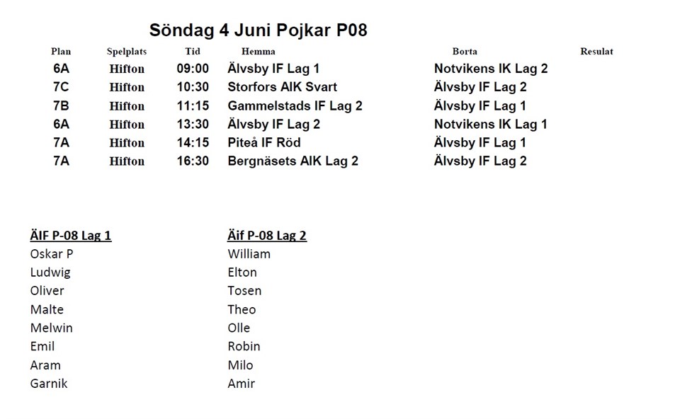 Dags för Examenscup i Hemmingsmark! På söndag samlas lag 1 kl 07.15 på älvåkra. Vid frånvaro meddela Anders O på Tel. 0702337074 första matchen är 09.00. Lag 2 samlas på älvåkra kl 08.45 vid frånvaro meddela Andreas S på Tel. 0738225942! Första matchen är 10.30! /Andreas o Anders P-08 3 jun 2017 0kommentarer