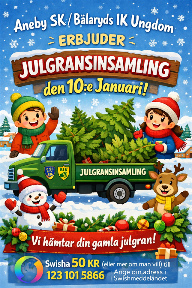 Swisha enligt nedan och lägg ut granen vid vägen senast kl 09 den 10e Januari. (Erbjuds inom Aneby tätort)