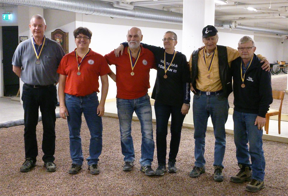 Resultat månadstävling januari. Se bild Månadstävlingen samlade 21 personer och det lottades ihop 11 dubbellag lag (Öppen klass). Två gruppspel med 5 respektive 6 lag där alla mötte alla. De tre bästa i varje grupp gick till slutspel där vinnarna i varje grupp gick direkt till semifinal. Tvåan och trean i grupperna spelade kvartsfinal där segrana gick till semifinal Segrare och guldmedaljörer blev Mikael Bartoft och Lasse Kalionpää. På andra plats Pauli Mäkitalo som i gruppspelet tvingades att spela med 6 klot. I finalen fick han hjälp av Sebastian Kallionpää. På tredje plats Cattarina Eriksson och Erika Hedström, som slog Lars-Ove Antonsson och Rolf Olsson. Arboga Oppboga BK 25 jan 2016 0kommentarer