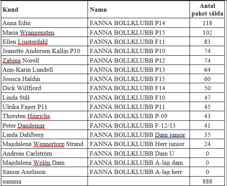 Bifogat antal sålda i paket per 7 juni, kanske ger en hint om hur ni ligger i kampen om ett träningstillfälle med Ravelli - tänk på att flest paket inte säkert är den som ligger i topp - vi räknar snitten utifrån hur många spelare ni är i laget - alla har chans att knipa förstaplatsen.
