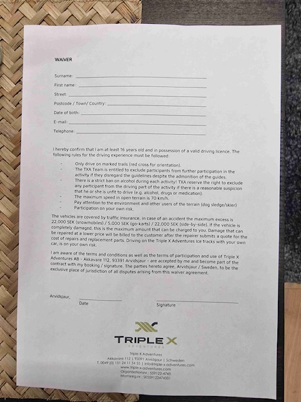 Ni läser igenom papperet/bilden och skriver typ: Jag har läst och Viktor Norberg får köra.