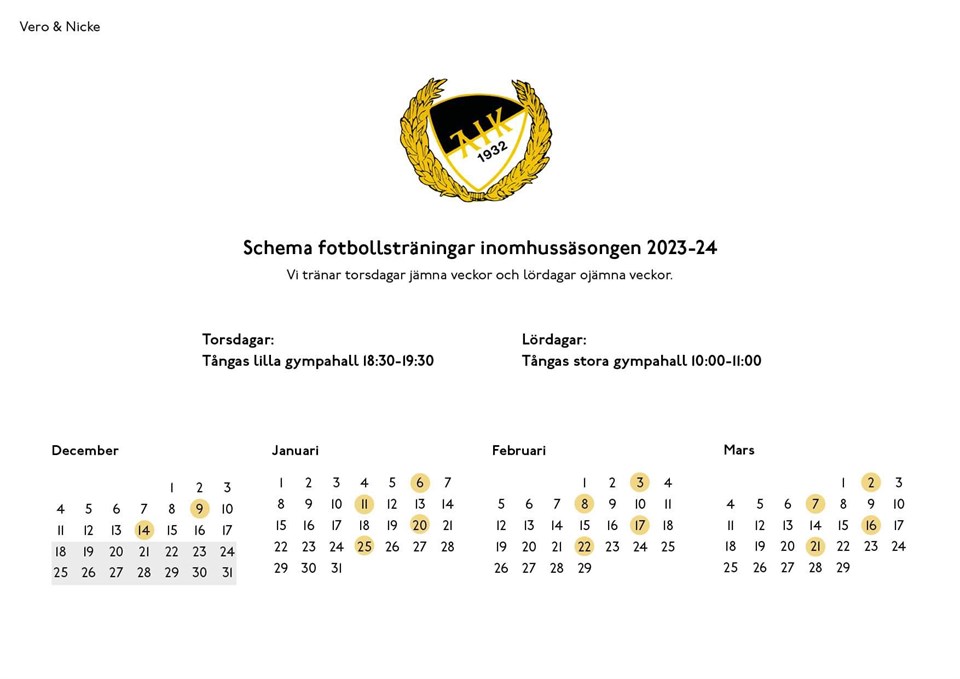 På bifogad bild ser ni träningsupplägget gällande Inomhustiderna. Tryckfelsnisse har varit framme gällande lördagsträningarna. Där är det tiden 10-11 som gäller! Glöm inte att det är fortfarande benskydd på som vanligt. P/F2013 21 nov 2023 1kommentar