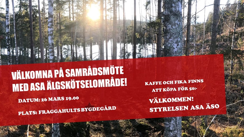 Välkomna på älgmöte den 22 augusti 2019 kl 19:00 i Fraggahults bygdegård! Sedvanliga årsmötesförhandlingar. Fika finns att köpa i pausen Notera att styrelsen ser det angeläget med minst en deltagare från respektive jaktlag. Om du skulle ha förhinder, tag i god tid kontakt med kamrater k jaktlaget för att säkerställa närvaron. Med vänliga hälsningar Styrelsen Asa ÄSO ASA Älgskötselområde 7 aug 2019 0kommentarer