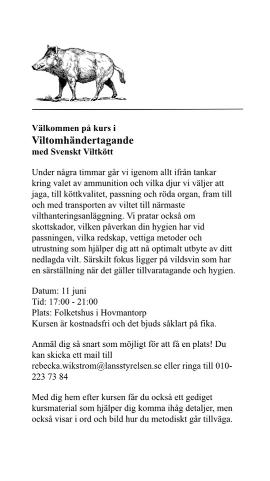 • Kurs i Viltomhändertagande