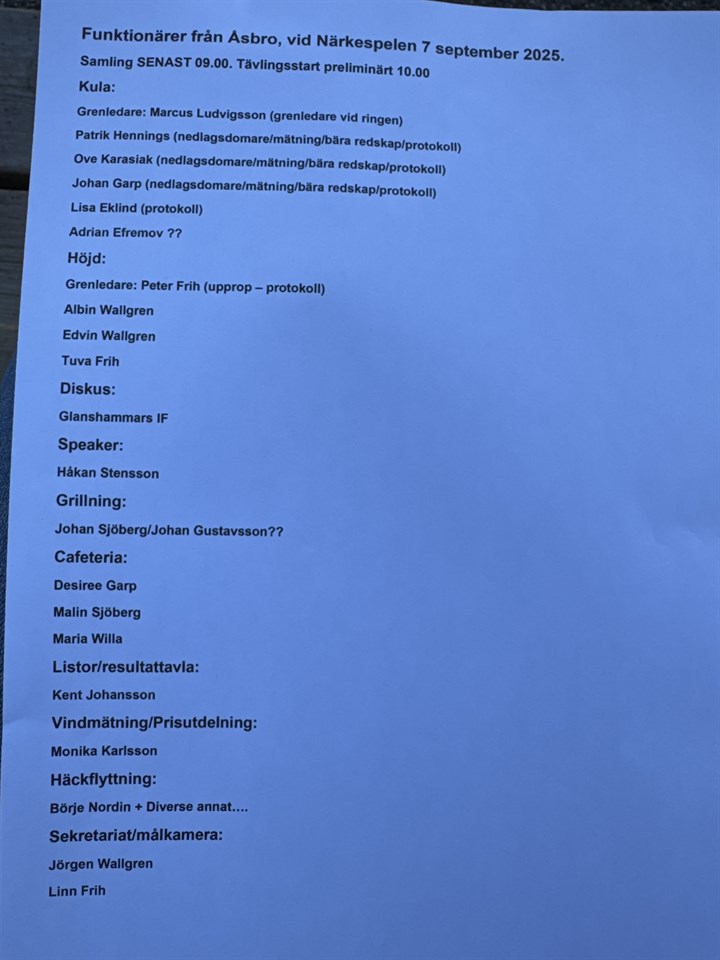 Hej! Här ser ni en lista över helgens funktionärer. Åsbrogruppen_Friidrott 3 sep 2025 0kommentarer