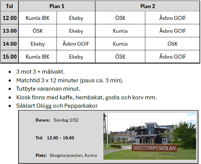 Vi har blivit inbjudna till att spela poolspel av Kumla IBK.