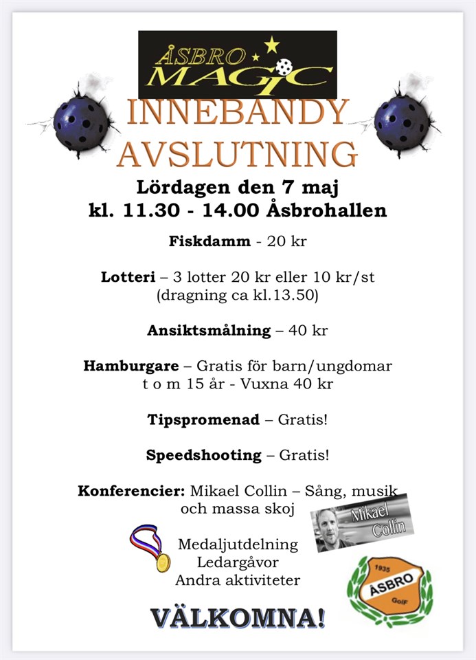 Äntligen kan vi ha vår innebandyavslutning. Anmäl att delta med deltagarens namn samt antal medföljande syskon och vuxna till asbrogoif.innebandy@gmail.com SENAST 1/5 P11-13 25 apr 2022 0kommentarer