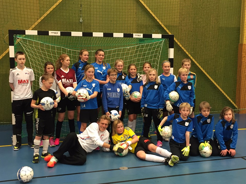 På fredagskvällen den 22 januari hade målvaktstränaren i F02/03 Håkan Andersson bjudit in till öppen träning med Åsundas samliga ungdoms- och barnmålvakter. Nitton (19) målvaktsintresserade dök upp i Hummelstahallen! Håkan trummade på omgående efter uppvärmningen med några korta snabba tips och trix om hur bollen bör fångas och hanteras när man står i mål. Därefter följde förevisning av ett antal stationer på vilka målvakterna senare fick rotera runt på. De ivriga deltagarna var aktiva och ivriga i stationerna och snart var de flesta målvakterna (och även de ledare som deltog för att få ideér om hur målvakter kan tränas) möra. Träningen avslutades med gruppfotografering och deltagarnas snabbutvärdering var entydig: -Vi vill ha fler målvaktspass! Håkan har själv varit duktig målvakt som aktiv och har erfarenhet mellan stolparna. Han tar del av nuvarande rön och teorier om hur en målvakt ska agera och har normalt som målsättning att lära sina målvaktslärlingar i F02/03 det absolut bästa. Åsunda IF Förening 23 jan 2016 6kommentarer
