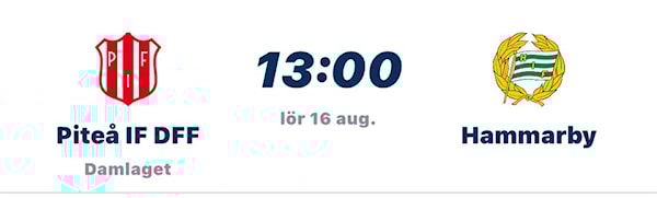 Den 16 augusti kommer Piteå IF DFF spela mot Hammarby Fotboll i Damallsvenskan på JIABvallen kl 13.00.