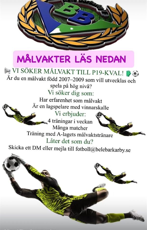 Bele Barkarby Fotboll söker nu en driven och ambitiös målvakt född 2007–2009 som vill bli en viktig del av vårt P19-lag och bidra till vår satsning i kommande kvalspel samt matchspel och träning med A-lgaet och U23.