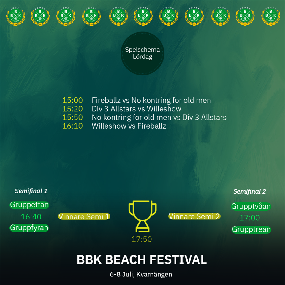Nu är det dags för den årliga beachhandbollsturneringen! Under lördagen är det endast matcher för seniorer och spelschema hittar ni på bilden. BBK Handboll 5 jul 2023 0kommentarer