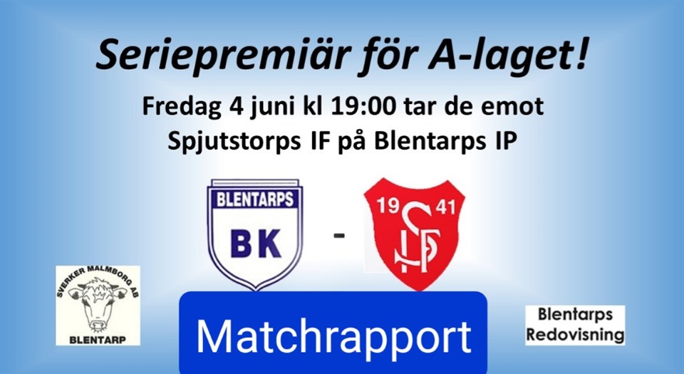 Äntligen dax för premiär efter en lång vinter och vår. Fina förutsättningar med en fantastisk plan och en bred bra trupp. Hoppas på fint väder och mycket fotbollssugna Blentarpsbor som kommer och stöttar laget och klubben imorgon med allt från inträde till grillad korv. Vi ska göra vårt bästa för att ge seriefavoriterna en bra match. Huvudtränare Mats Jeppsson Herrlaget 3 jun 2021 0kommentarer