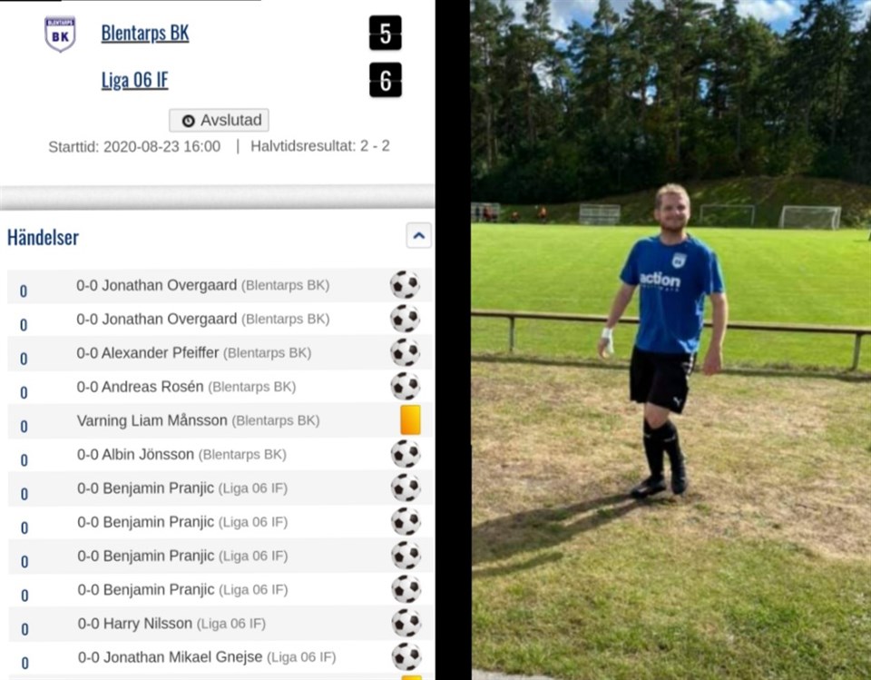 Matchrapport B-laget - Liga 06 5-6 Det känns som att vill man se mycket mål bör man nog åka till ip i Blentarp 21 mål på 2 matcher. Matchen mot Liga 06 blev en väldigt jämn och målrik match. Vi kom till match med 11 spelare och spelade 4-3-1. Vi är inte ledningen 2 ggr i början efter 2 mål av Jonathan Overgaard . Det är 2-2 i halvtid sen har vi 10-15 min i början på andra som vi tappar matchen och dom går fram till 4-2 sen gör Andreas Rosén och Alexander Pfeiffer mål och vi är ikapp. Sen gör dom ett ryck fram till 6-4 innan Albin Jönsson gör vårt 5 mål i 90 min. Man kan väl tycka att 5 mål bör räcka till vinst men inte denna gången. Trots förlusten tycker vi att vi gör en bra match och alla ska ha en eloge för sina insatser. /Tränarna Herrlaget 26 aug 2020 0kommentarer